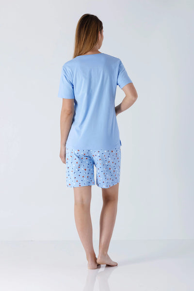 Puha tiszta pamut maximális kényelmet nyújt a pihentető éjszakákért. V nyakú, felső része 68 cm a 36/38 méretnél. A nadrág kényelmes ,kontrasztos és rugalmas derékkal. Anyaga: 100% újrahasznosított pamut .Származás : Németország. Mosási útmutató a be varrt címkén.